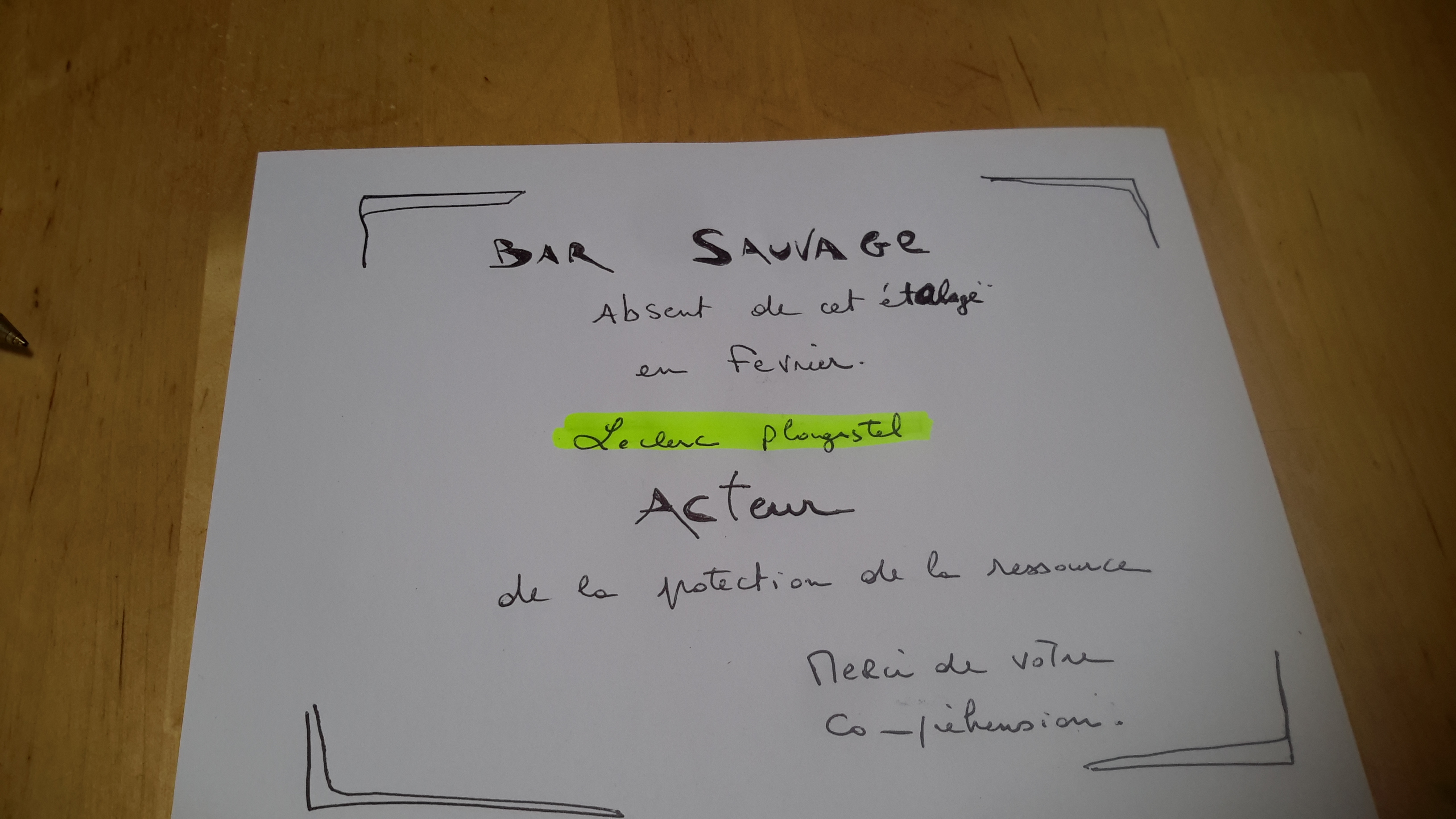 Bar sauvage menacé....merci de ne pas me consommer en janvier février mars de chaque année.....Ça laisse quand même 9 mois pour m ’ apprécier!