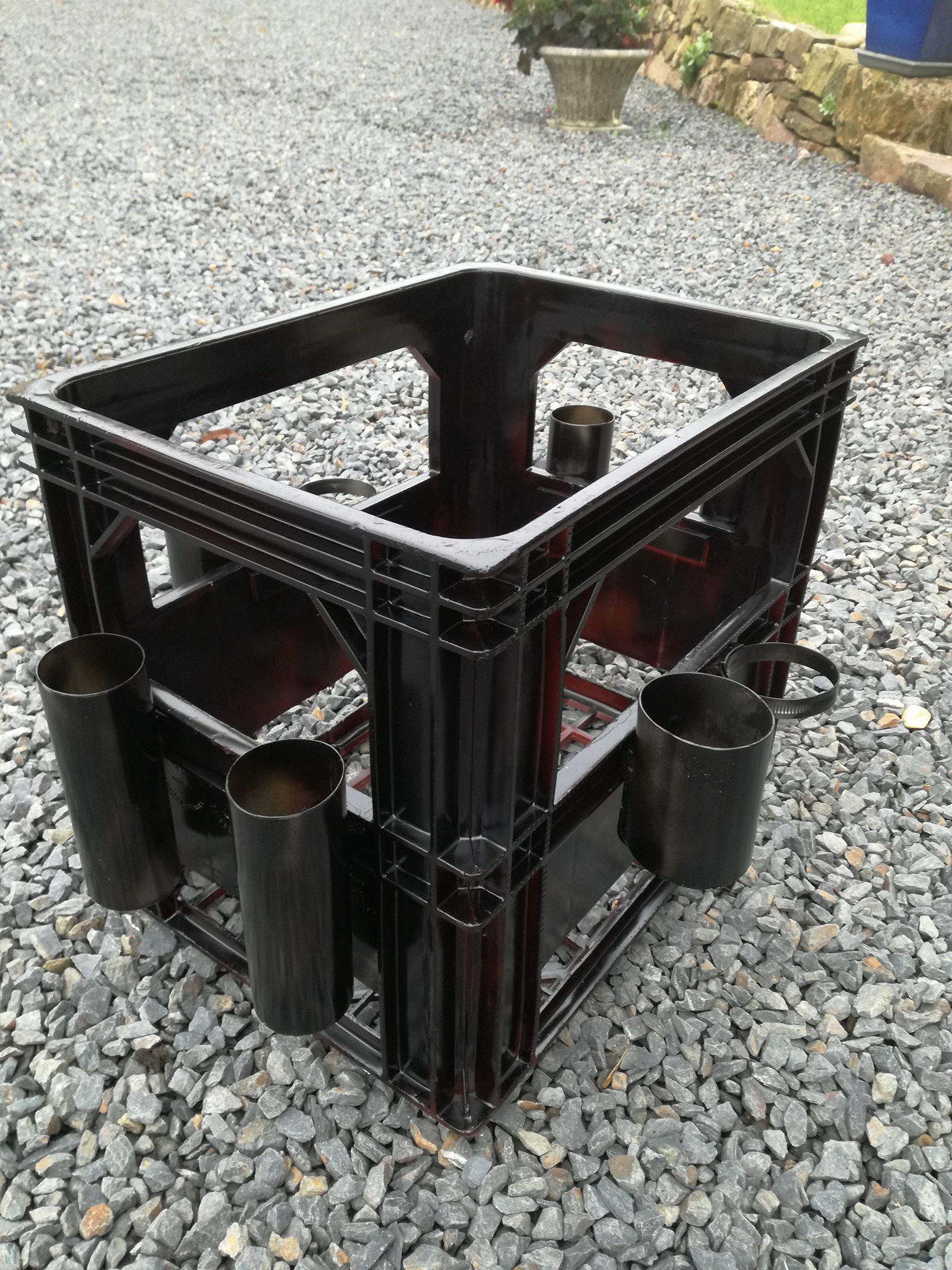 J'ai déjà fabriquer à partir d'une caisse de cidre, une caisse avec porte canne x 4 et porte bouteille (je vais essayer de vous mettre une photo). la caisse est sanglée au milieu du kayak.