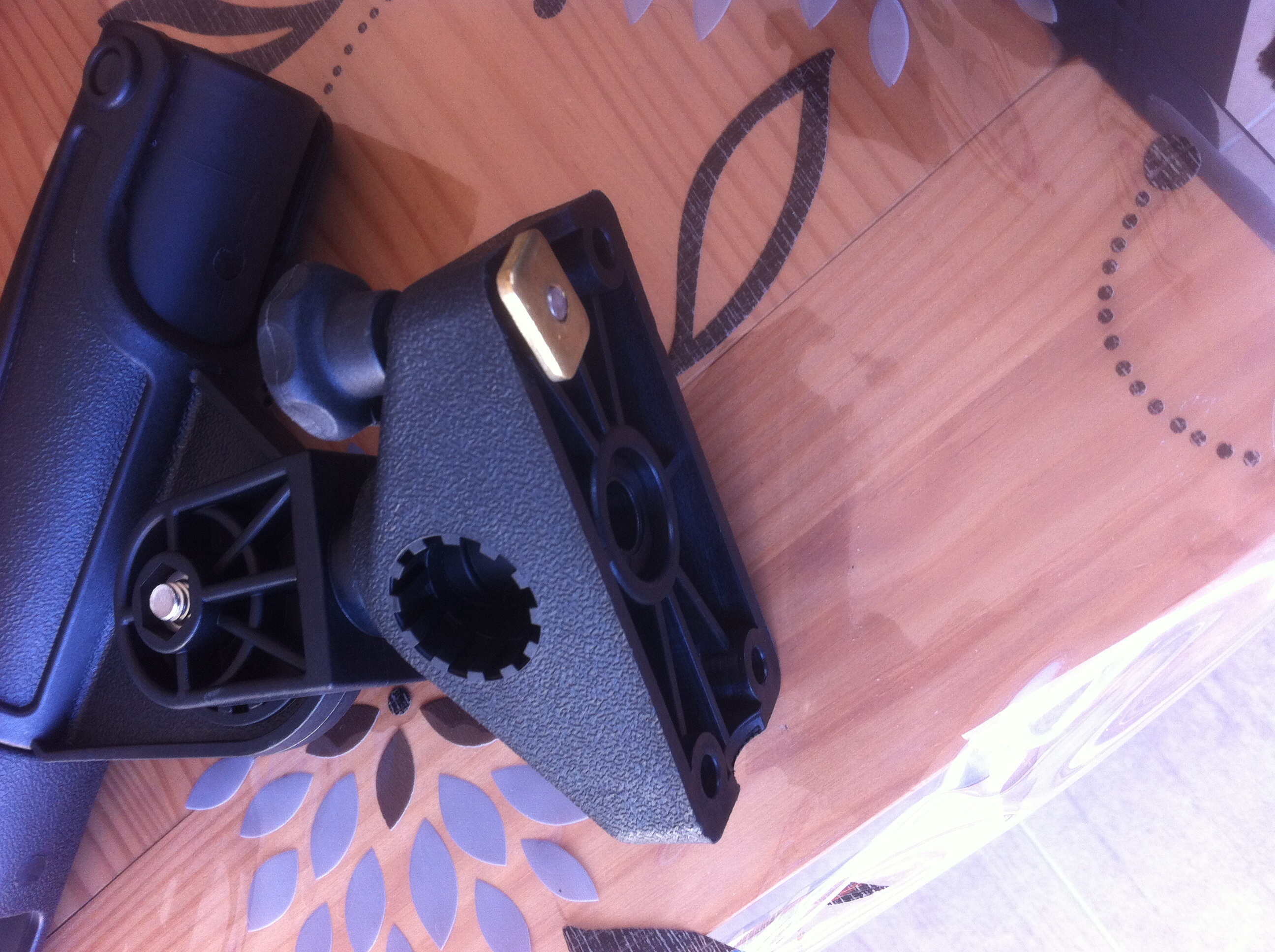 J’ai mis sur le rail droit, en avant pour ne pas gêner le pagayage. Comme ce n'est fixé qu’avec deux vis, je te conseille de poser le socle sur le côté extérieur, donc en appui sur la coque du kayak...