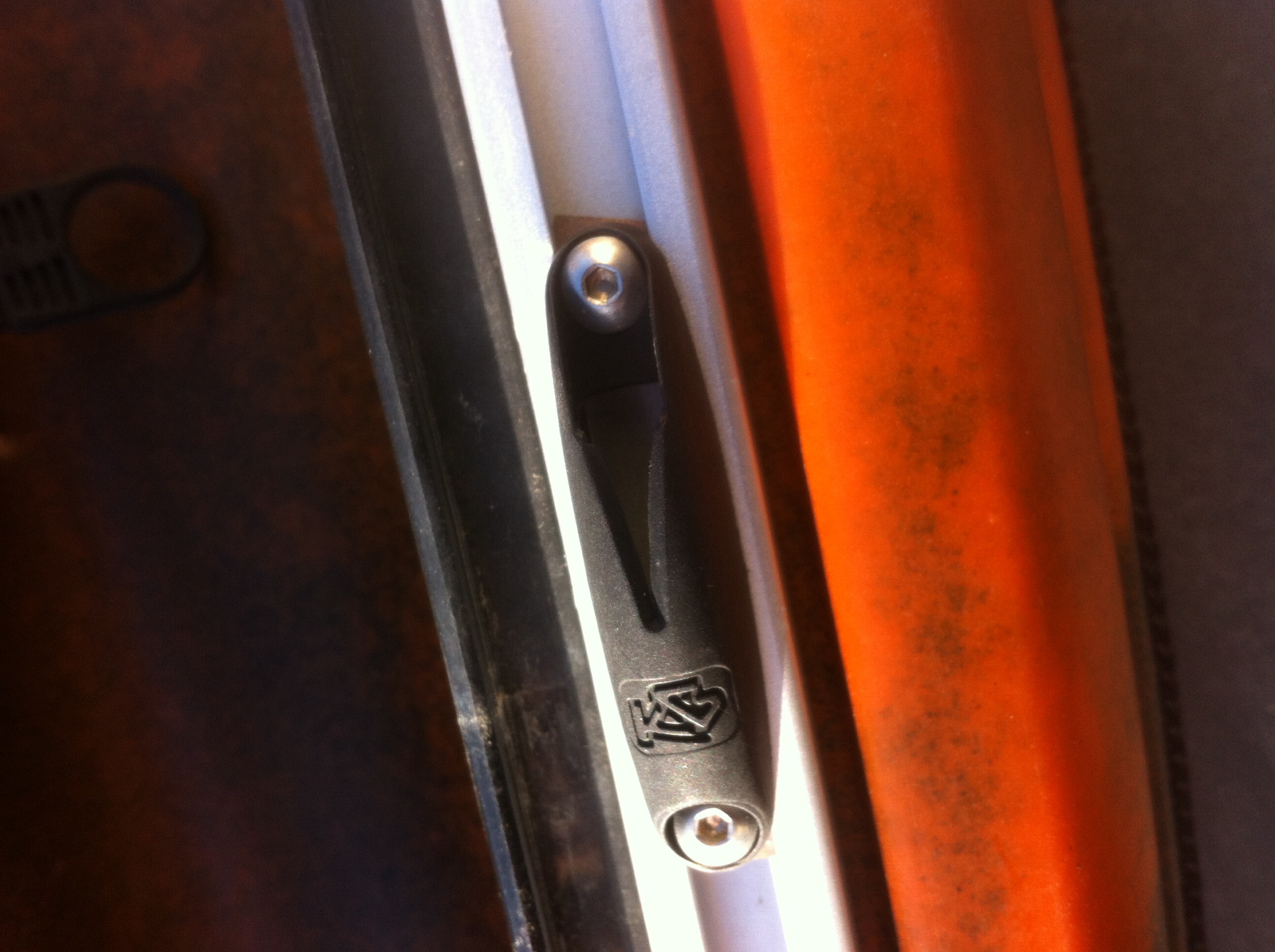 Tu peux fixer le pied du porte canne avec 4 vis (par ex sur le couvercle rectangulaire central) ou effectivement sur le rail, et dans ce cas avec 2 vis + écrous carrés coulissants. Normalement ton porte canne était livré avec 2 vis + écrous, et non une seule comme tu sembles montrer sur ta photo.