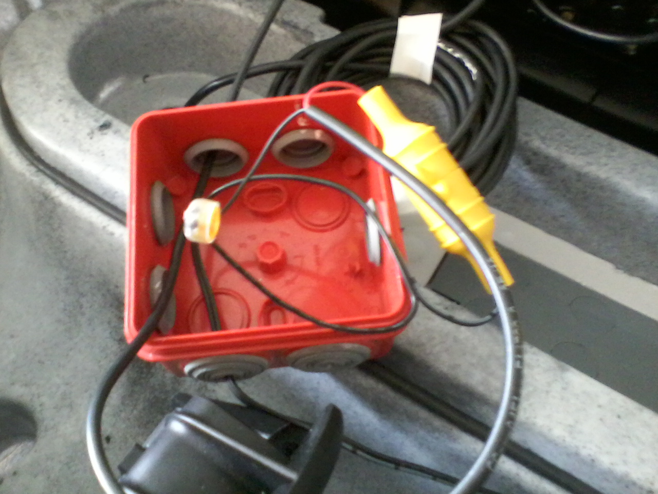 Je pense faire la même installation, mais pus sur l'avant de la trappe, pour le passage du câble vers la batterie sur l'avant je mettrai un morceau de frite de piscine et pour passer de la trappe avant vers le haut un passe-câble bien propre.
