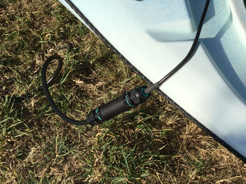 3. Après avoir gardé ma batterie un moment à l'avant, j'ai préféré la mettre à l'arrière. Pour cela j'ai fait une rallonge en utilisant un connecteur étanche trouvé dans une grande surface de bricolage.