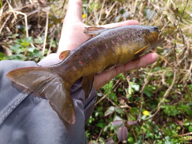 Perso après hésitations j'ai finalement repris ma carte et retrempé quelques nymphes dans le ruisseau en bas de chez moi. Toujours difficile à piquer ces truitelles surtout en nymphes mais au moins ça mordait.