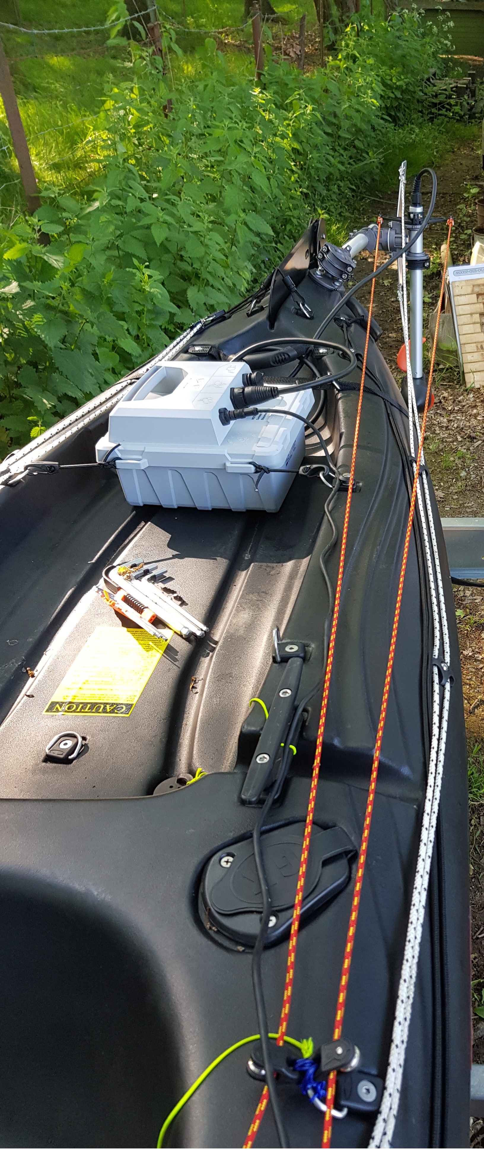 Comme écrit dans mon texte ce n'est pas mon montage, je ne me sers pas de moteur sur mes flotteurs. Pour la direction en cas de panne ce n'est pas un souci puisque la pagaie étant obligatoire à bord tu reviens dans ce cas à un kayak classique. Ces roues ne doivent pas être facile à embarquer c'est sur, et je pense que ce chariot est aussi une bricole personnelle du gars, comme les porte canne, le principal étant que ces bricolages lui conviennent :wink: