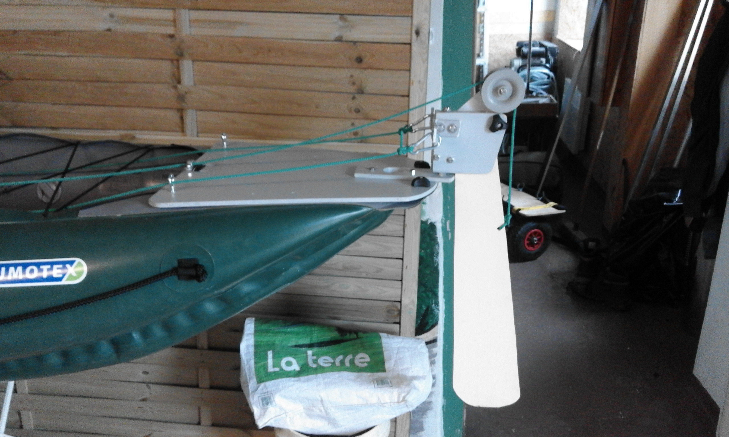 Je viens de bricoler un gouvernail sur mon Halibut (Gumotex gonflable) . J'ai testé ce week-end par mer légèrement agitée et peu de vent.