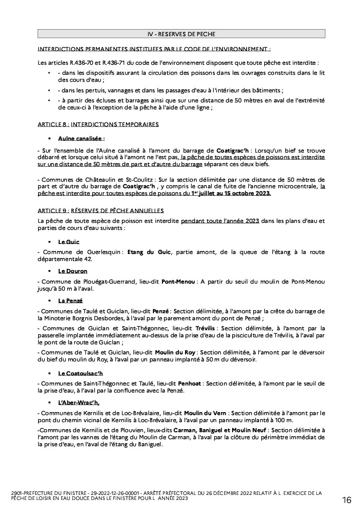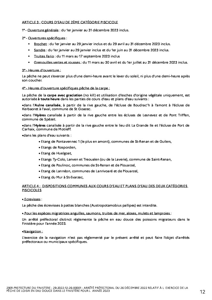 Pour les amateurs de pêche en eau douce du Finistère, l'arrêté 2023 est sorti vous le trouverez ci dessous, l'arêté migrateur sortira plus tard, je vous le transmettrai dès que je l'aurai, bonne lecture :wink: